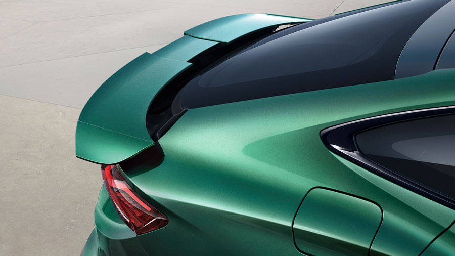 Đuôi gió điện tự động mở ra khi xe đạt vận tốc hơn 100 km/h và đóng lại khi xe chạy dưới 70 km/h hoặc tùy chỉnh đóng mở từ bảng điều khiển trung tâm.